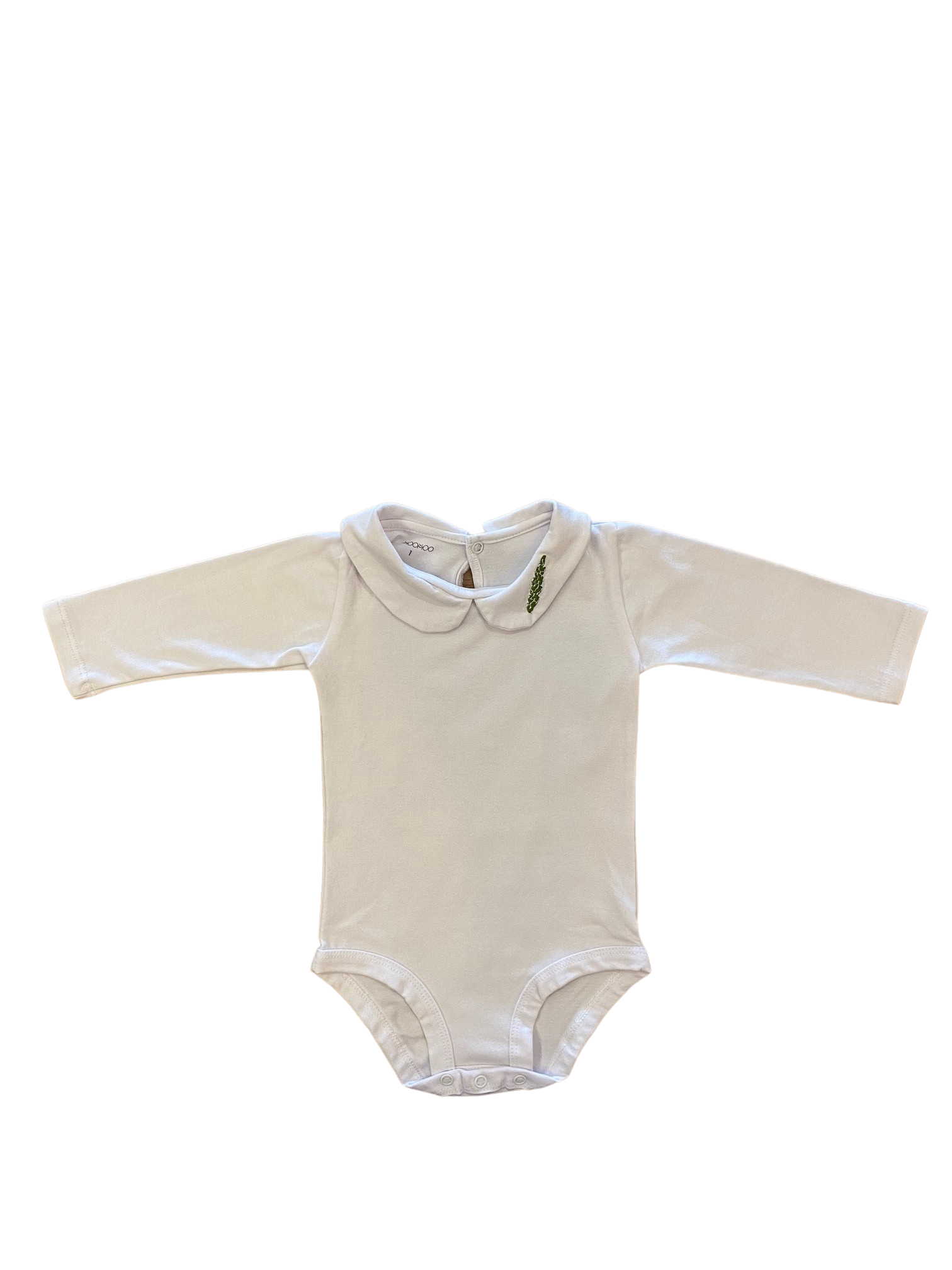 Body made from BCI certified cotton. Leaf-shaped embroidery on the collar.