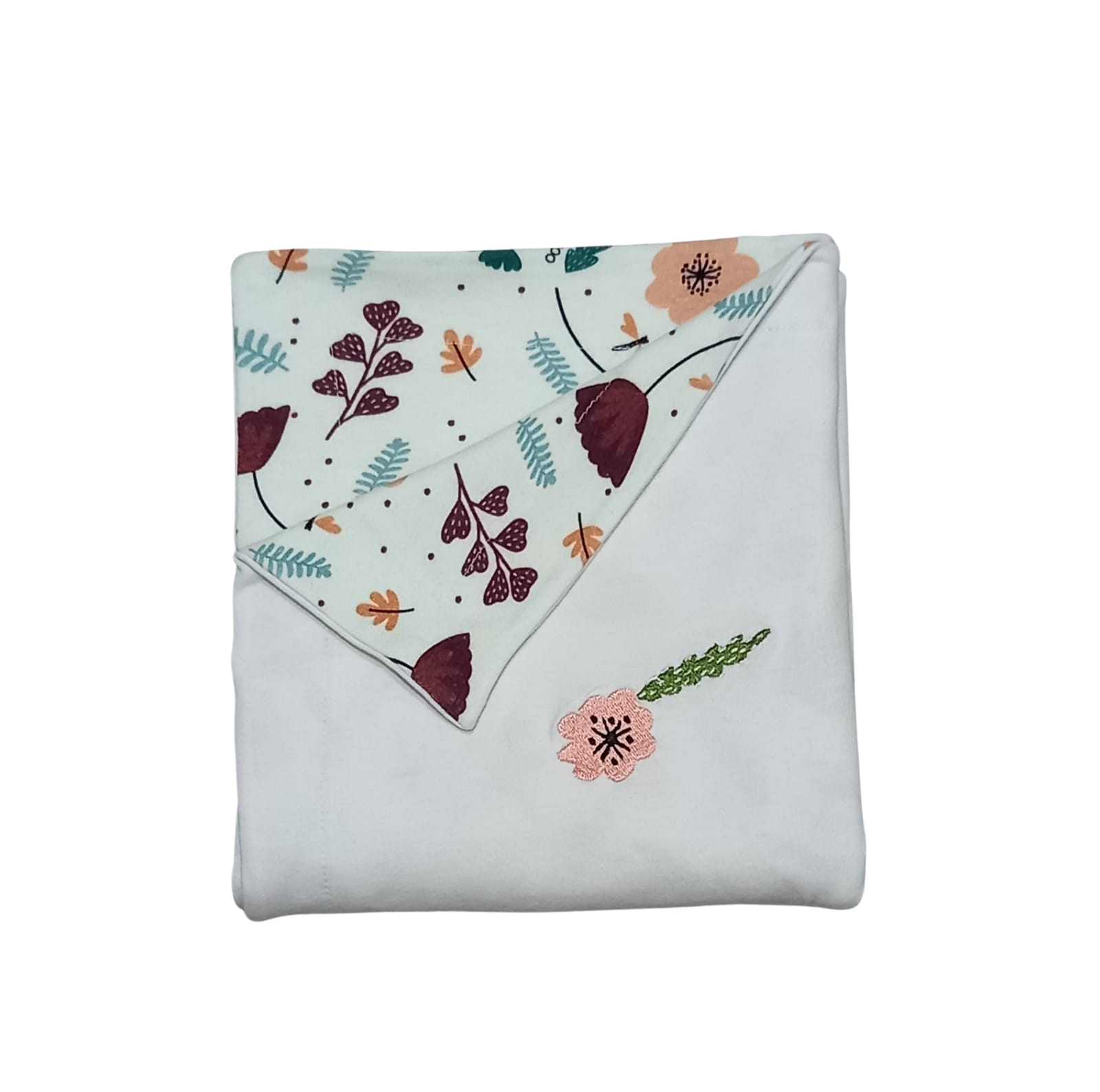Dragonfly blanket from our baby line on one side with a print from the Jardim Botânico collection and the other side in white with embroidered detail.
